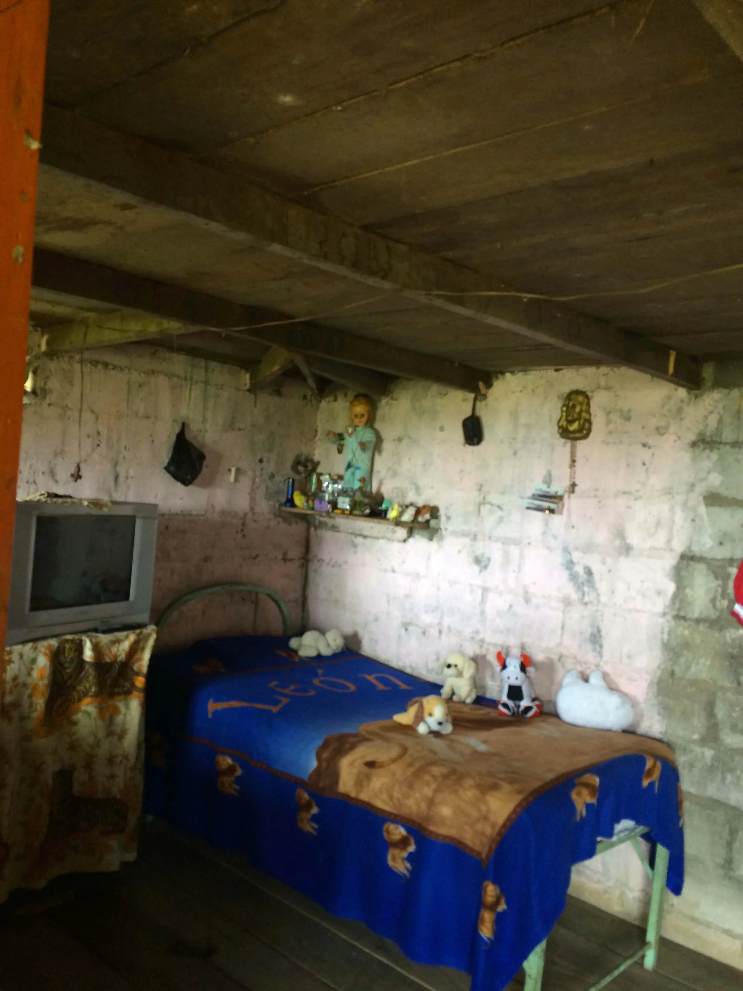 A Rosa se le llenan sus azules ojos de lágrimas cuando cuenta su historia. Los surcos de su cara y sus manos arrugadas dan fe de toda una vida de trabajo en el campo. Su casa está rodeada de unas imponentes montañas adornadas con cafetales y árboles frutales. Es una construcción humilde, pero hermosa e impecable. Me ofrece café con panela y arepa en una pequeña cocina con estufa de carbón, donde las ollas colgadas en las paredes son tan relucientes que parecieran alumbrar la estancia. Al recorrer su casa se ve que Rosa ha puesto un especial esmero en la decoración: las camas llevan mantas de colores, hay repisas con muñecas y figuras en plástico de personajes animados, un niño Jesús, afiches del Barça. En el centro de la mesa donde nos tomamos el café hay un pequeño recipiente con flores amarillas recogidas de su jardín.